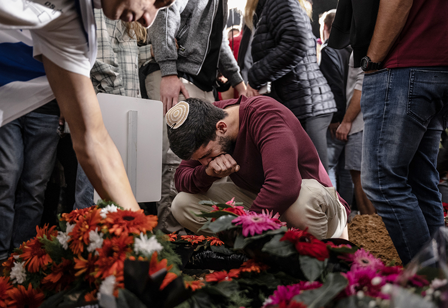Family and friends attend the funeral of of two Israeli brothers at Mt Herzl cemetery in Jerusalem, 12 October 2023. | Photo: Chen Schimmel/Flash90