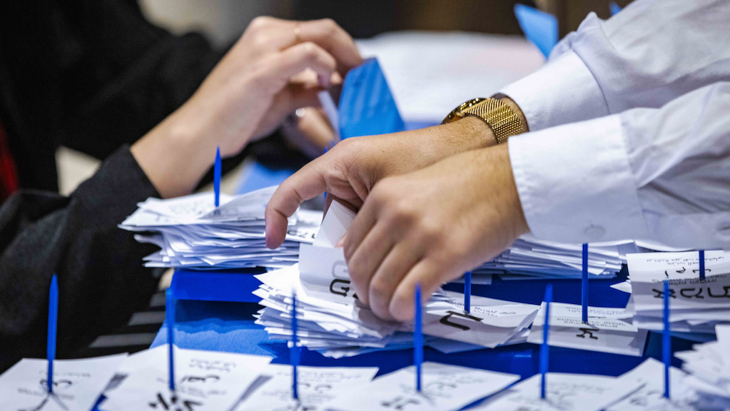 Central Election Committee workers count the remaining ballots at the Israeli parliament in Jerusalem, after the general elections, on November 3, 2022. | Photo: Olivier Fitoussi / Flash90