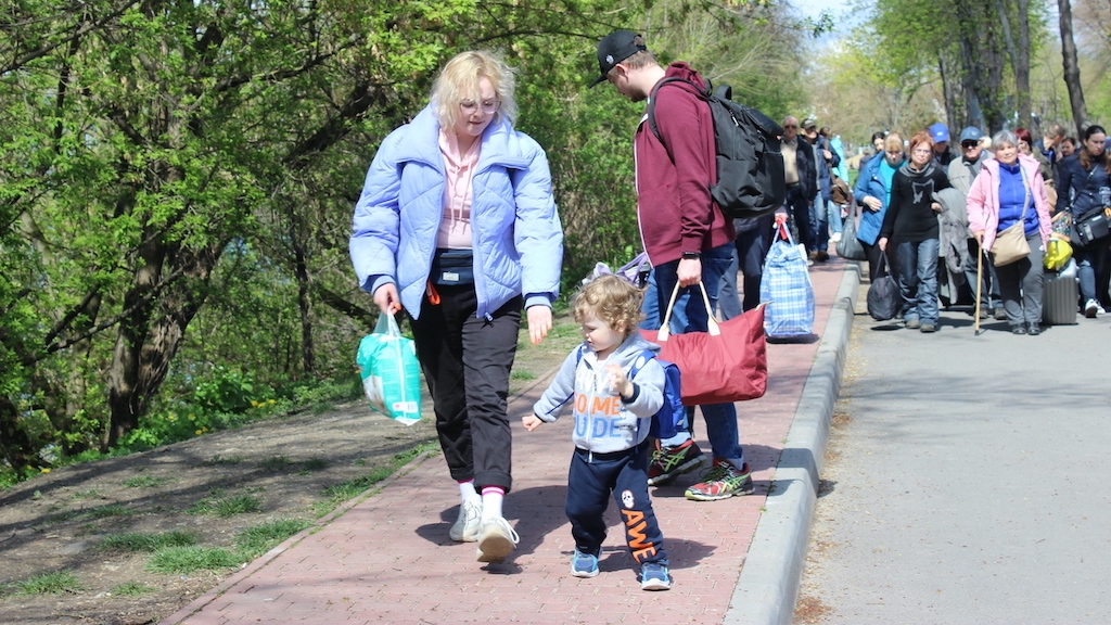 In our bus there were several passengers with moving stories. Ira was one of them. She comes from the heavily besieged city of Mariupol. When her apartment in the center was bombed, she could only just grab her handbag. Her suitcase was ready as well, but there was no time to take it with her. She could only just climb from the fourth to the third floor. From the third floor she could jump from a porch to the ground floor. That was a long way down. A doctor who examined her later said: “You have had a guardian angel. It is a miracle you didn’t break anything.”