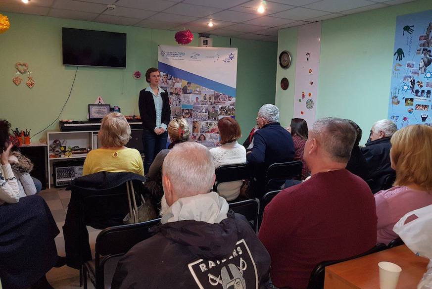 Orly Wohlstein explaining about the "Bridges of Israel" in the Jewish communities of Severodonetsk, Kremenchug and Mirgorod.